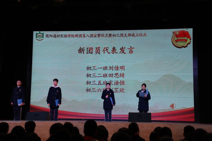 然后,新团员代表发言,他们表示将在今后的学习和生活中更加努力地学习知识、锤炼技能、服务社会。他们的发言充满了对未来的信心和期待,也展现出了新团员们的朝气和活力。