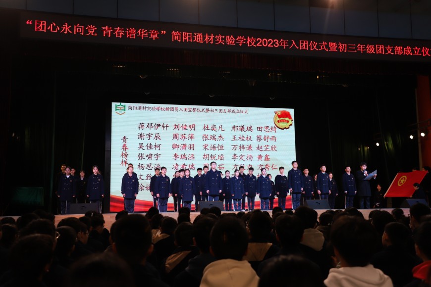 2023年12月11日晚,我校在艺体馆三楼隆重举行了2023年新团员入团宣誓仪式暨初三年级团支部成立仪式。本次活动旨在引导广大学生继承和发扬“五四”运动的光荣传统与爱国精神,凝聚青年力量,增强青年荣誉感和自豪感。