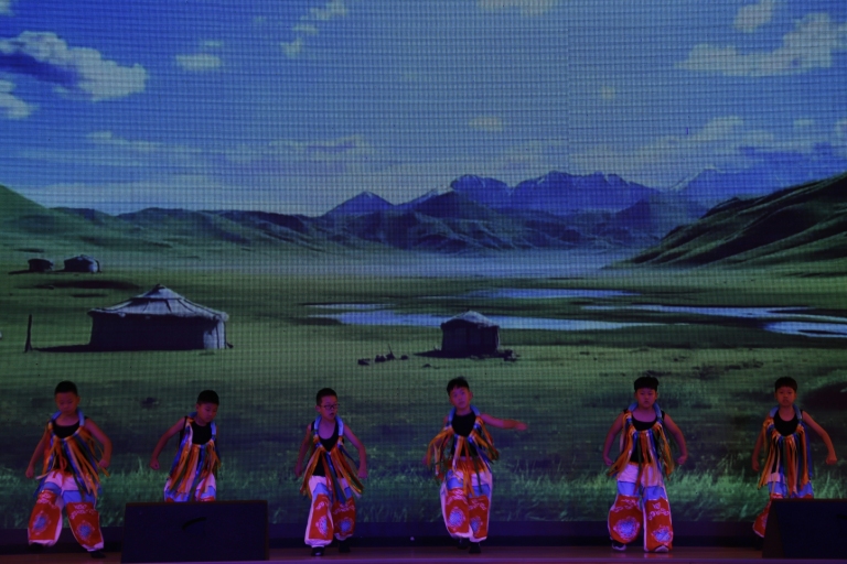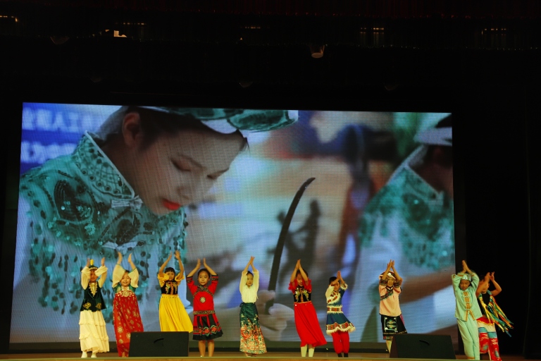 一场别开生面的民族游戏互动将现场推向高潮。同学们手拉手,一起参与到充满民族特色的游戏中,大家在游戏中增进了了解,加深了友谊,真正诠释了“各民族同学像一家人一样”的深厚友谊。