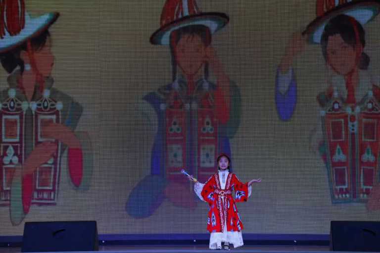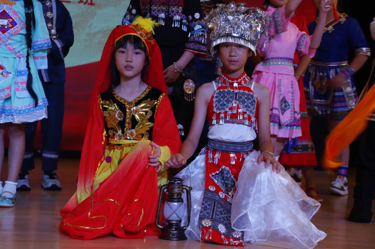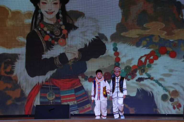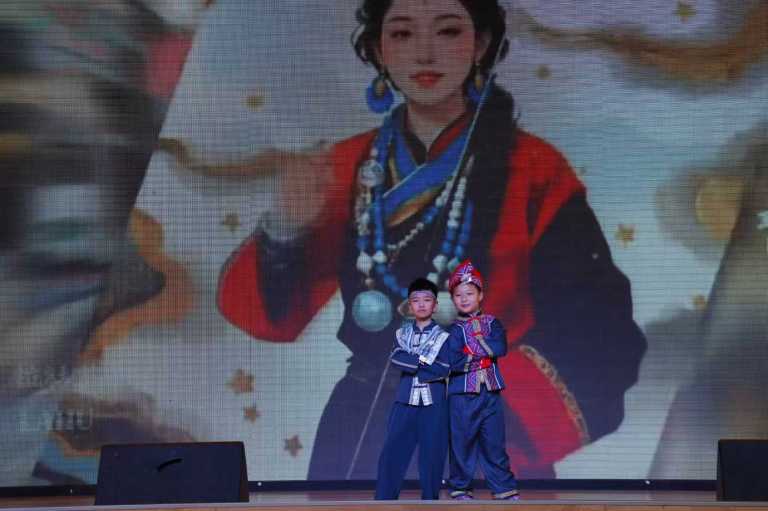 最引人注目的班级风采展示环节,将活动推向高潮。4.3班的同学们身着维吾尔族、藏族、蒙古族、壮族等多个民族的特色服饰依次走秀,精美的服饰、灵动的步伐,仿佛一幅“各民族儿女共展风采”的生动画卷,让在场师生直观感受到不同民族的文化魅力。随后,同学们带来《民族大团结》朗诵,铿锵有力的话语、真挚饱满的情感,诉说着“各民族像石榴籽一样紧紧抱在一起”的信念,传递出对民族团结的美好向往。