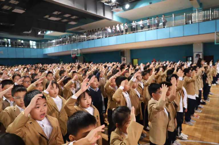 仪式伊始,五星红旗冉冉升起,全体师生肃立行注目礼,爱国情怀在每个人心中激荡。升旗仪式后,嘹亮的校歌《寻梦》响彻场馆,同学们用饱满的歌声唱出对学校的热爱与对梦想的追求。