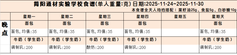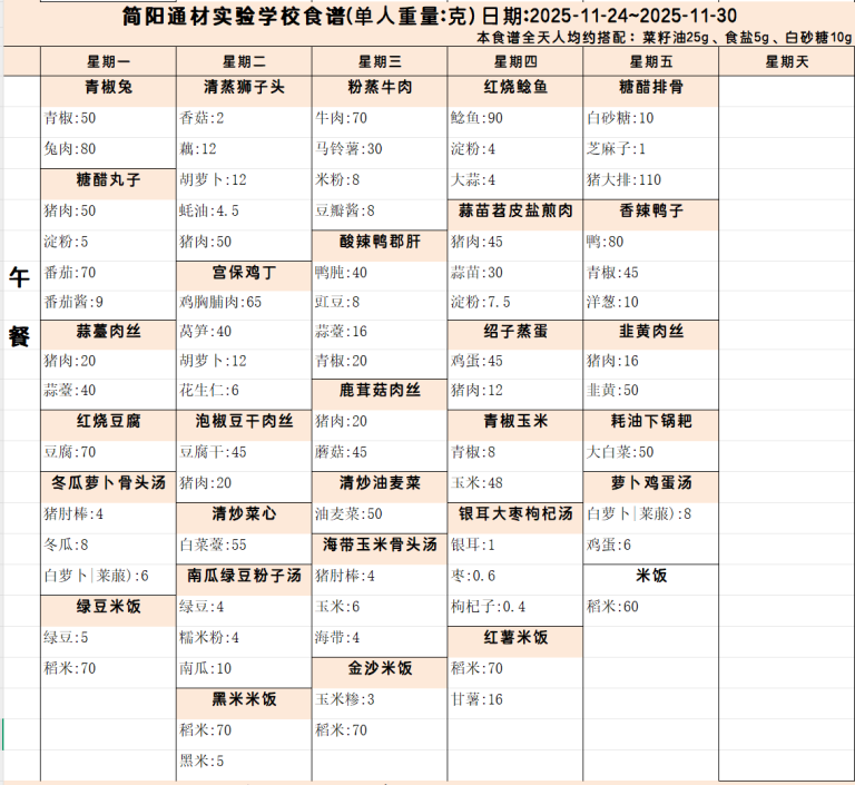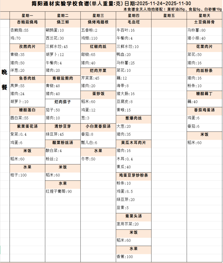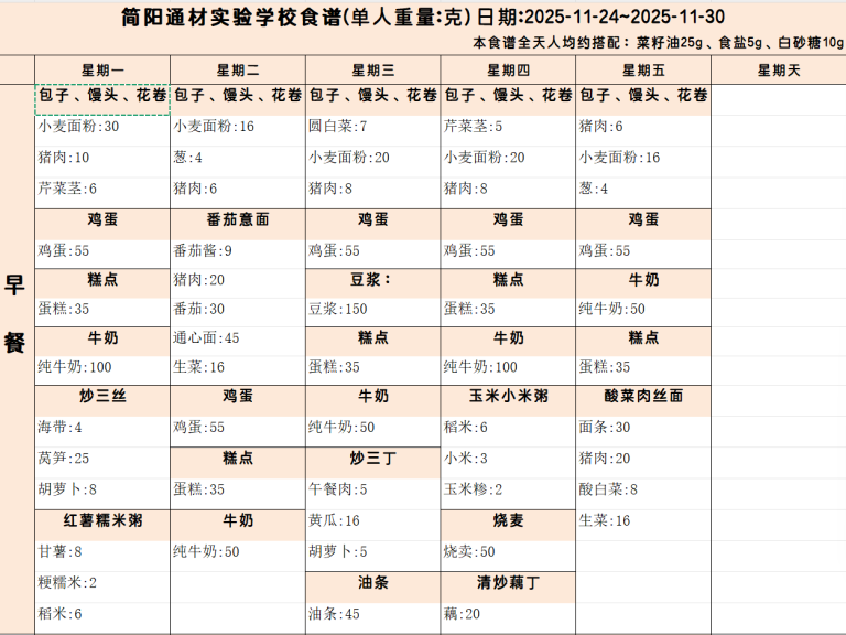 本周营养食谱