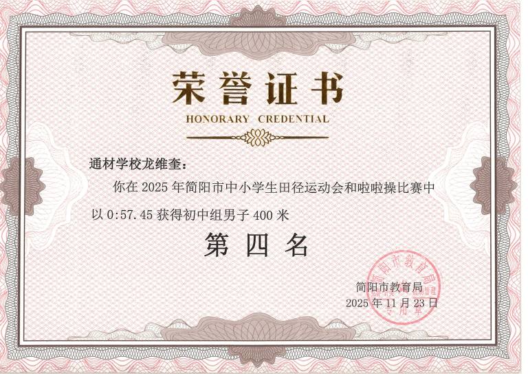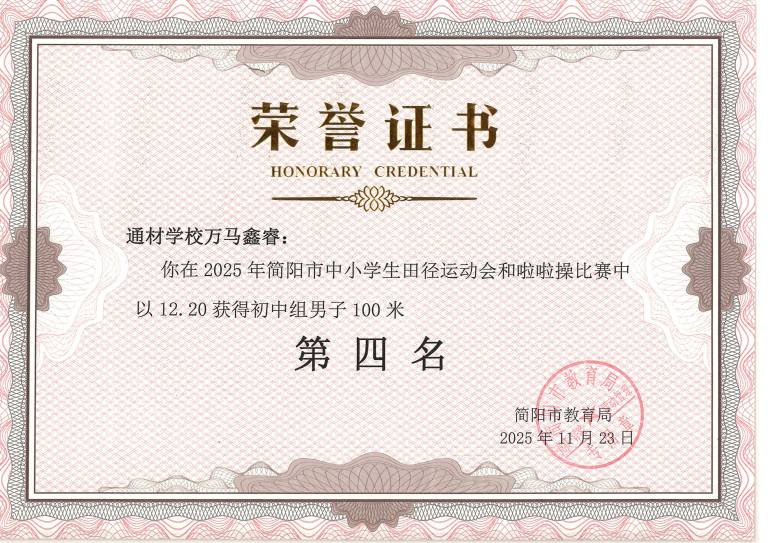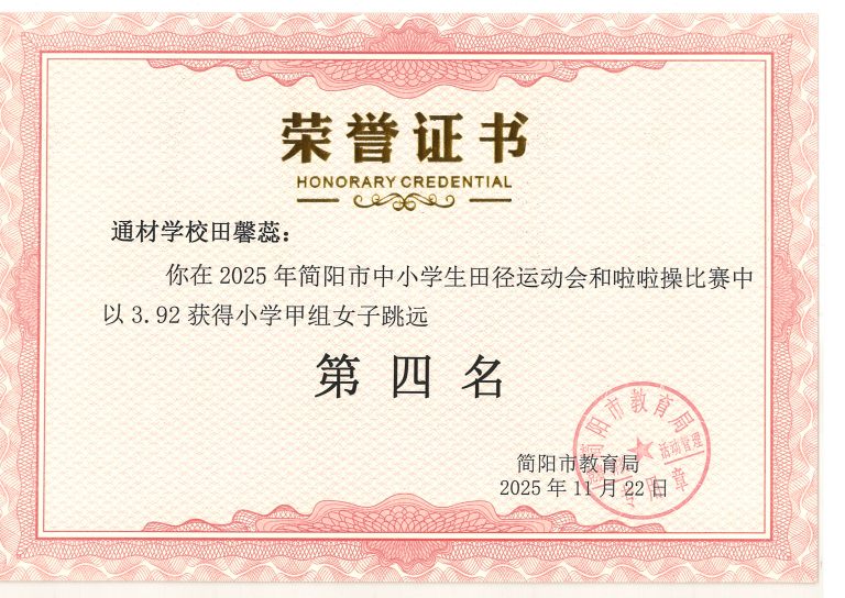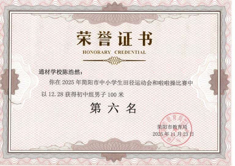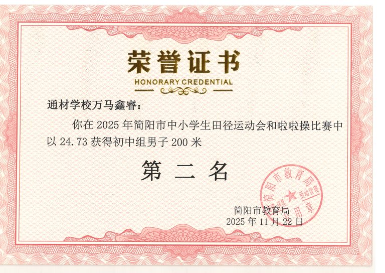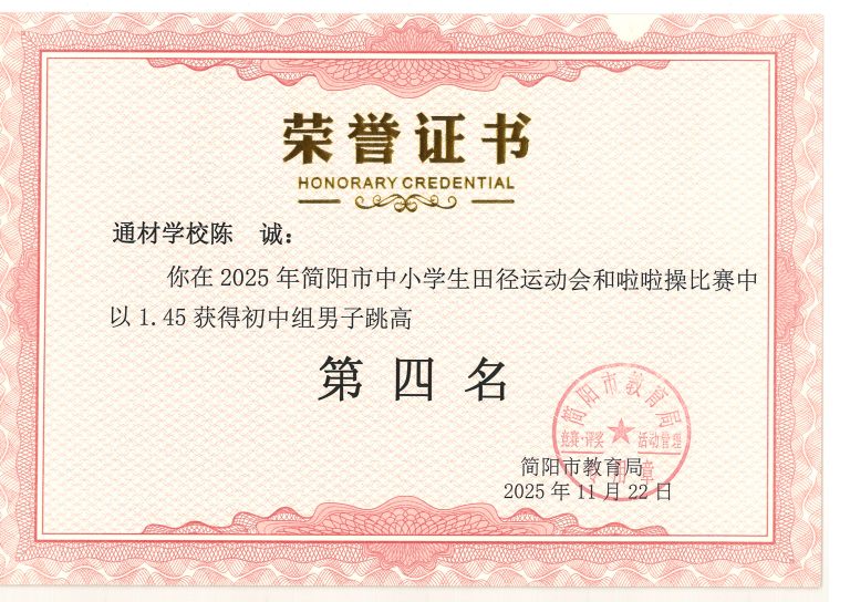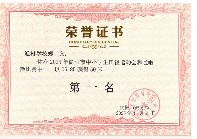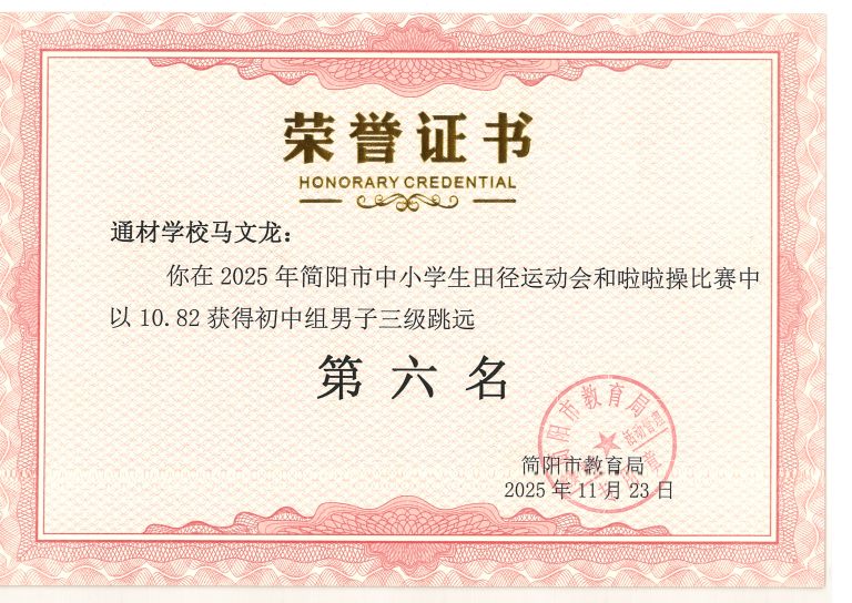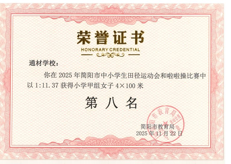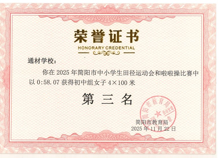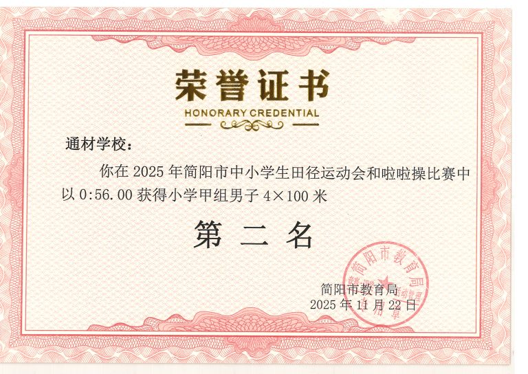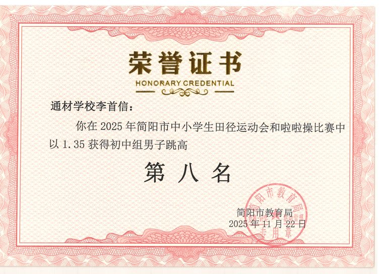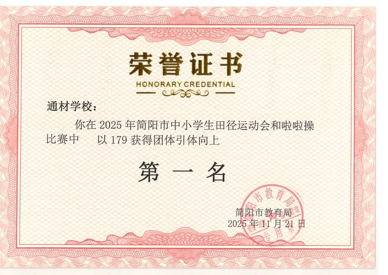2025 年简阳市中小学生田径运动会与啦啦操比赛圆满落幕。通材学子奋勇争先、顽强拼搏,以一校之力组建队伍,与各学区代表队同场竞技,最终力克强敌、斩获优异成绩,用实力诠释了 “五育并举,全面发展” 的育人成效。