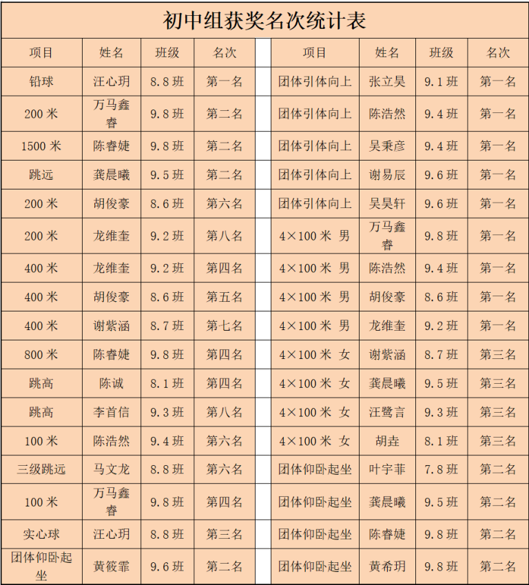 二、个人名次