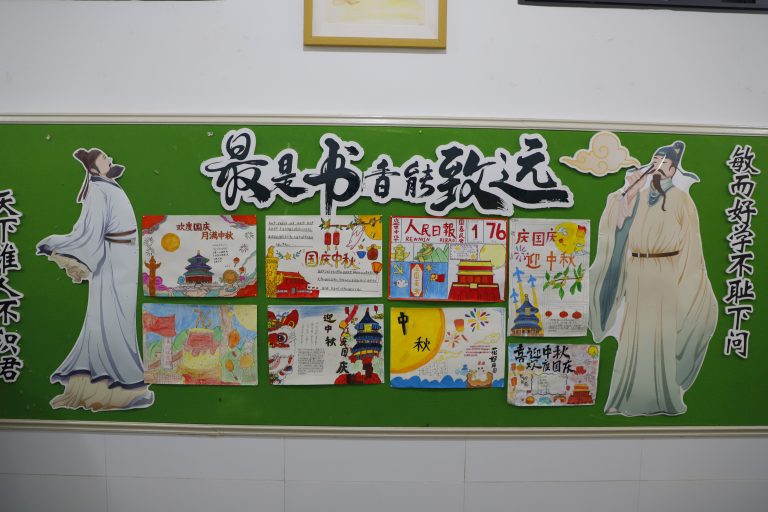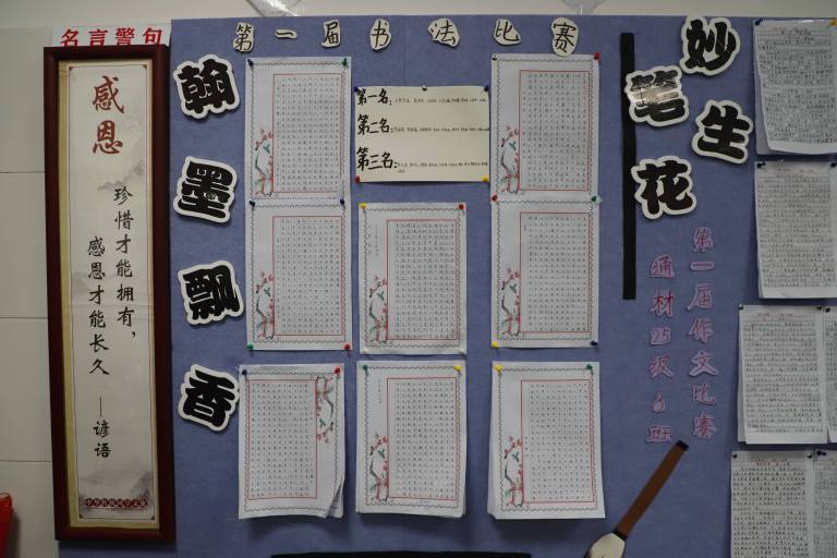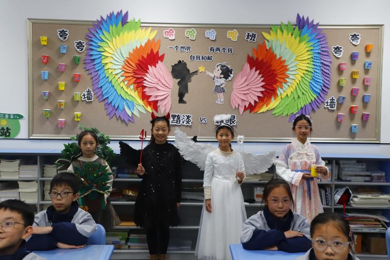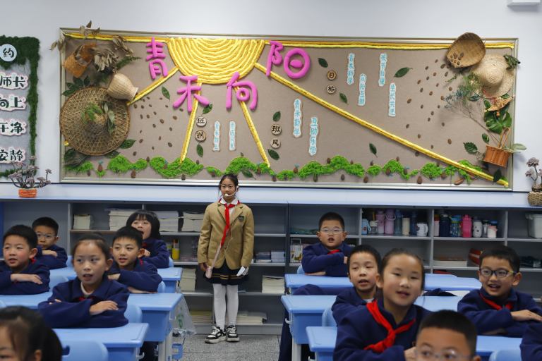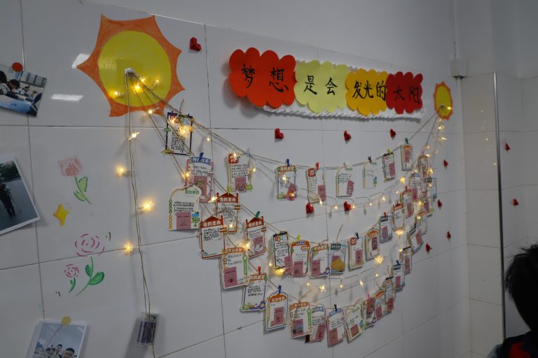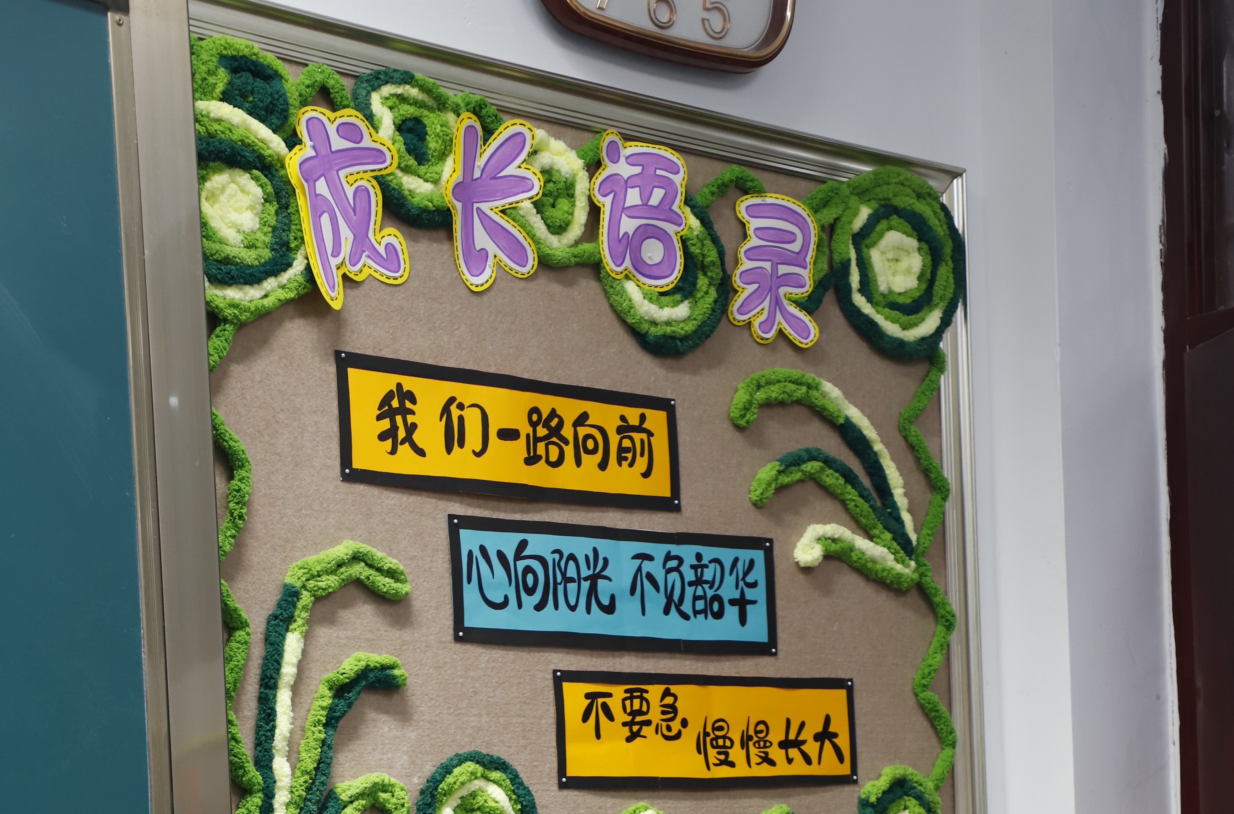 走进各班教室,处处皆是惊喜。有的班级以“书香致远”为主题,打造错落有致的图书角,整齐摆放的书籍旁点缀着学生的读书心得,笔墨书香扑面而来;有的班级聚焦“成长赋能”,精心设计“星光闪耀”荣誉墙、“梦想启航”心愿栏,将学生的优秀作品、进步足迹一一展示,让每一面墙壁都成为激励成长的“无声导师”;还有的班级融入学科特色,数学公式手抄报、英语主题黑板报、科学实验成果展相映成趣,将知识学习与文化布置深度融合,让教室成为学科实践的“第二课堂”。