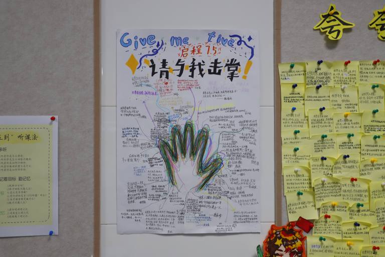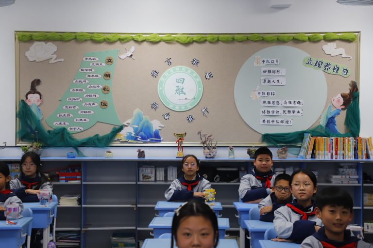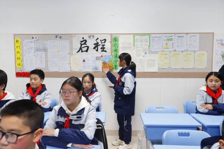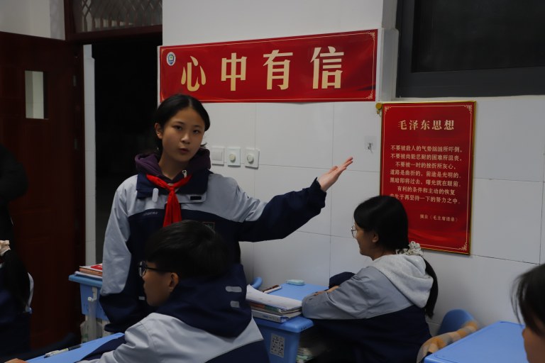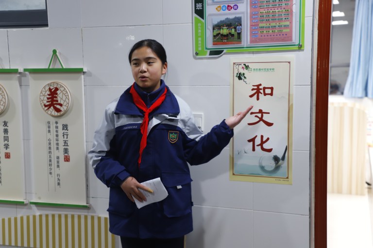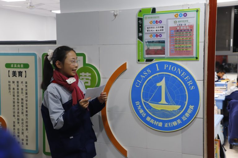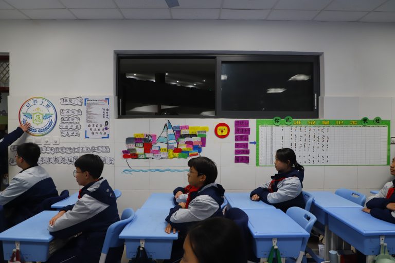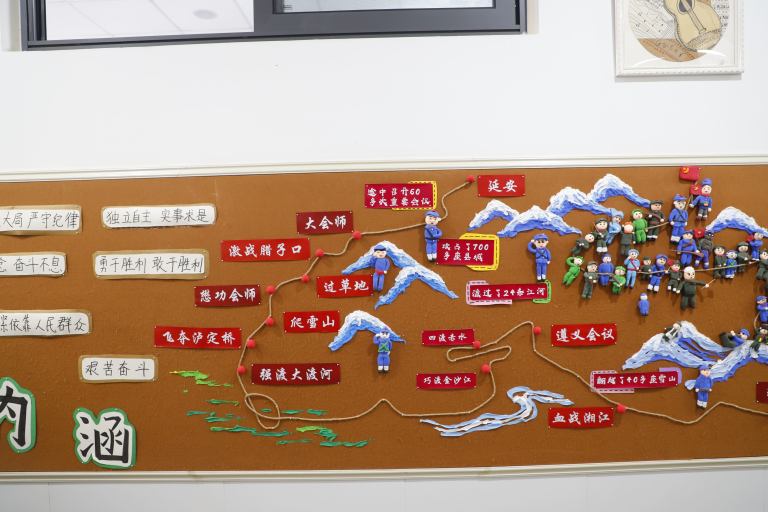 走进各班教室,处处皆是惊喜。有的班级以“书香致远”为主题,打造错落有致的图书角,整齐摆放的书籍旁点缀着学生的读书心得,笔墨书香扑面而来;有的班级聚焦“成长赋能”,精心设计“星光闪耀”荣誉墙、“梦想启航”心愿栏,将学生的优秀作品、进步足迹一一展示,让每一面墙壁都成为激励成长的“无声导师”;还有的班级融入学科特色,数学公式手抄报、英语主题黑板报、科学实验成果展相映成趣,将知识学习与文化布置深度融合,让教室成为学科实践的“第二课堂”。